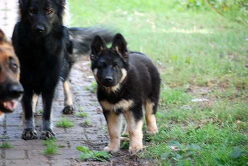 Der süße Arc ist am 16.07.2016 bei uns eingezogen. Er stammt zu 100% aus alten, erbgesunden DDR-Linien mit geradem Rücken und imposantem Körperbau. Arc wurde herzlich in unser Rudel aufgenommen, ist selbstbewußt und offen für alles Neue. Ich hoffe, er darf später mal in die Zucht. Bis dahin muß er aber noch viel lernen und wachsen. Wir freuen uns jedenfalls, daß dieser tolle Krümel jetzt bei uns wohnt, hier Fotos vom 1. Tag in seinem neuen Zuhause mit 8,5 Wochen.