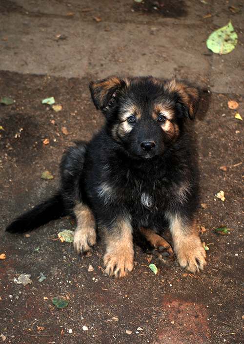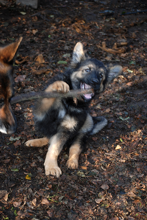 "Jody vom Ostdeutschen Eck", Hündin (schwarzes Halsbändchen), Farbe grau-braun gewolkt -VERKAUFT!-