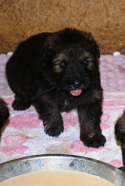3 Wochen alt, die erste Zufütterung von Welpenmilch...