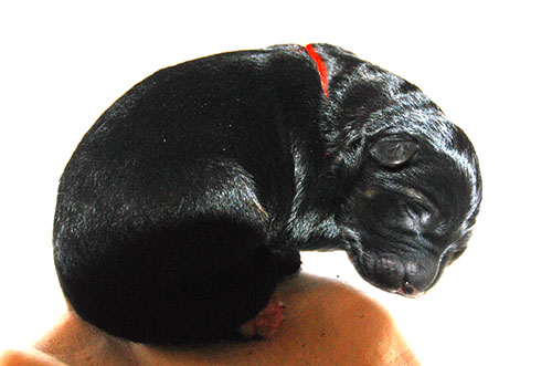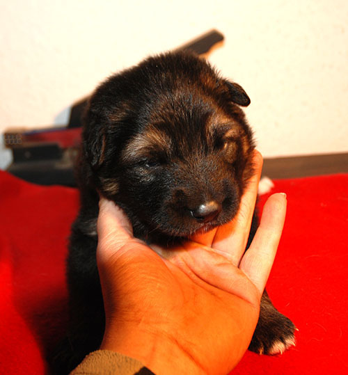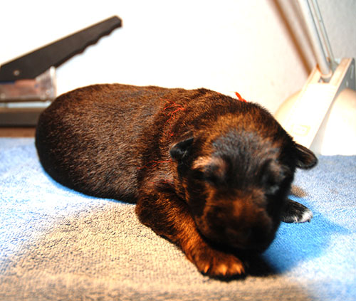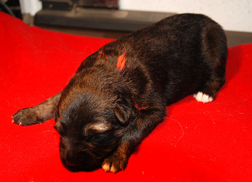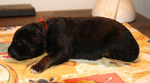 Geburtszeit: 12.15 Uhr => Rüde, 470 g, schwarz-braun (ROTES Bändchen)
